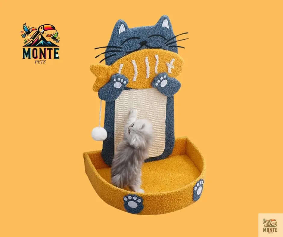 Katzenkratzbrett mit Bett Fischkatze Komfort Blau-Gelb | MONTE PETS