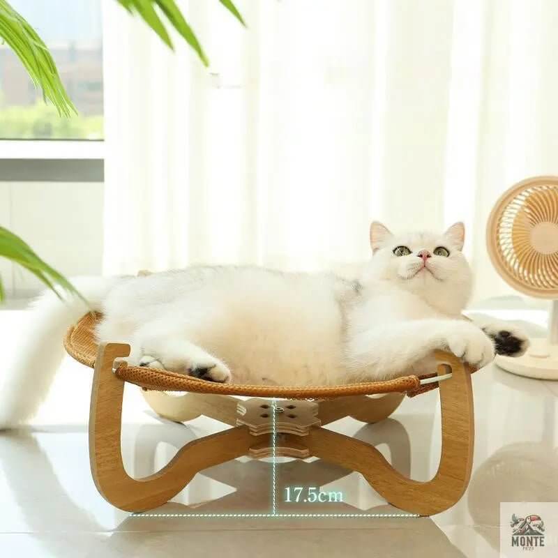 Das RattanCool Sommerbett für Katzen & kleine Hunde bietet deinem Liebling einen angenehm kühlen Rückzugsort. Mit seiner luftdurchlässigen Rattanfläche und dem erhöhten Holzrahmen schützt es zuverlässig vor Bodenkälte und Hitzestau – perfekt für warme Sommertage.