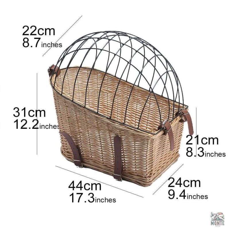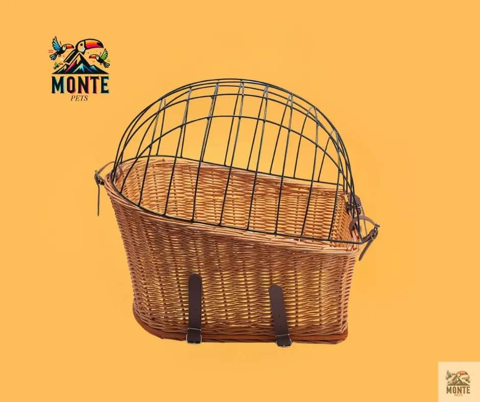 Sorge für stilvolle Sicherheit unterwegs – mit dem RetroBike Haustier-Fahrradkorb aus Weide, jetzt bei MONTE PETS entdecken!